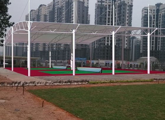 目前膜结构找形分析的方法主要有动力松弛法、力密度法以及有限单元法等。陕西膜结构设计考虑的荷载一般是风载和雪载。在荷载作用下膜材料的变形较大,且随着形状的改变,荷载分布也在改变,因此要精确计算结构的变形和应力要用几何非线性的方法进行。荷载分析的另一个目的是一确定索、膜中初始预张力。